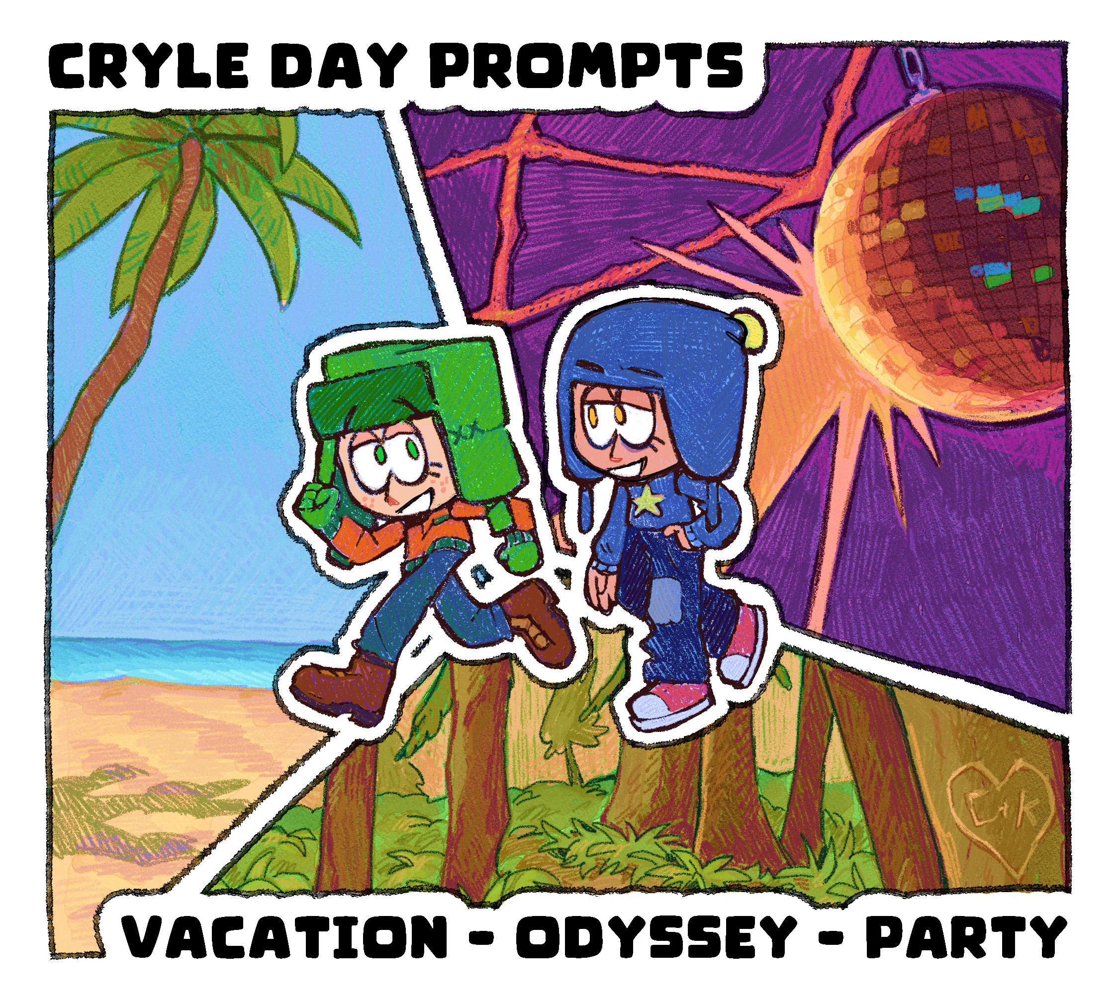 ⭐ Anyone and everyone is welcome to participate! This is not a dynamic exclusive event, and anyone can draw Kyle and Craig however they like! All are headcanons welcome!⭐ We encourage creativity! Please interpret the prompts however you like, and feel free to mix and match the prompts. Just have fun!⭐ Late submissions are OK!⭐ The hashtag for this year's event is #CryleDay2025.⭐ The NSFW hashtag is #EvilCryleDay2025. Please mute this tag if you would not like to see NSFW content. The mods are not responsible for what other people post.⭐ We will NOT be sharing any NSFW pieces created by minors.⭐ Please appropriately flag NSFW work and tag any sensitive content when posting your work. The mods are not responsible for what other people post, so please tag/mute responsibly!⭐ We've created an AO3 collection under the name “CryleDay”. Type it in the “Post to Collections/Challenges” option when adding or editing a new work, and it’ll pop up there!